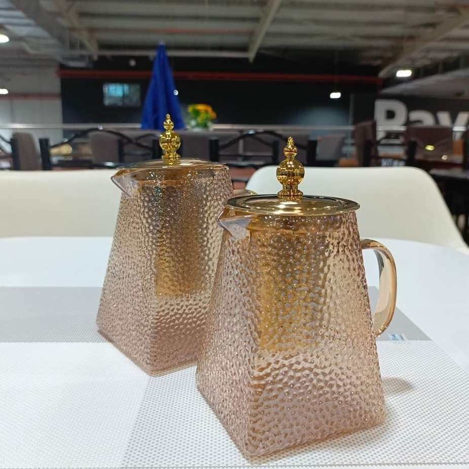 - تصميم أنيق: طقم شفشق زجاجي مطروق مع أغطية تاج ذهبية مزخرفة، مما يضيف لمسة من الرقي إلى خدمة الشاي الخاصة بك