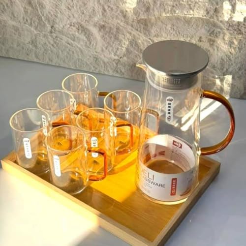 - مجموعة كاملة: يتميز طقم الشاي الزجاجي الأنيق بإبريق سعة 1.450 لتر مع غطاء من الفولاذ المقاوم للصدأ، و4 أكواب بسعة 270 مل لكل كوب، وصينية تقديم خشبية.