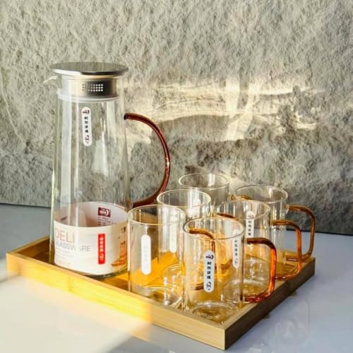Generic - طقم شاي زجاجي مع 4 أكواب 270 مل وإبريق 1.450 لتر وصينية من الخيزران