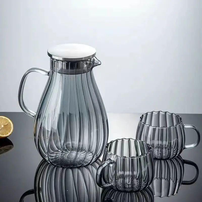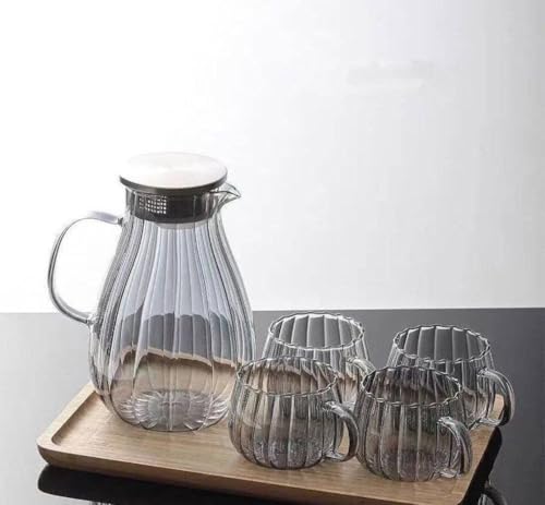 - مجموعة فاخرة: خدمة شاي زجاجية كاملة بما في ذلك إبريق بسعة 950 مل مع مصفاة مدمجة من الستانلس ستيل و4 أكواب مطابقة