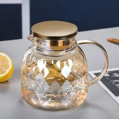 Generic - براد شاي زجاجي بغطاء ذهبي، زجاج آمن للحرارة، متوافق مع النار المباشرة