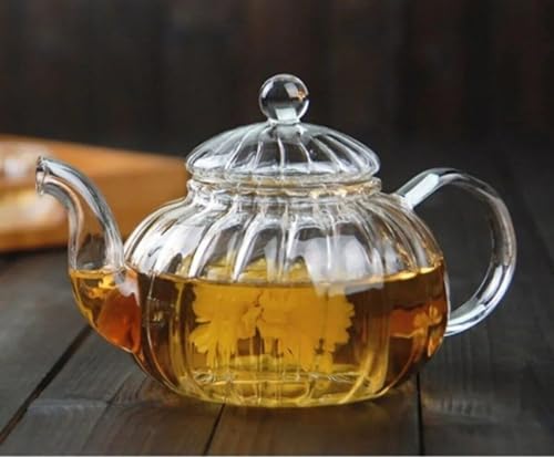 - تصميم أنيق: يتميز بتصميم زجاجي شفاف جميل على شكل يقطين مع غطاء آمن، مثالي لعرض أورق الشاي المزهرة.