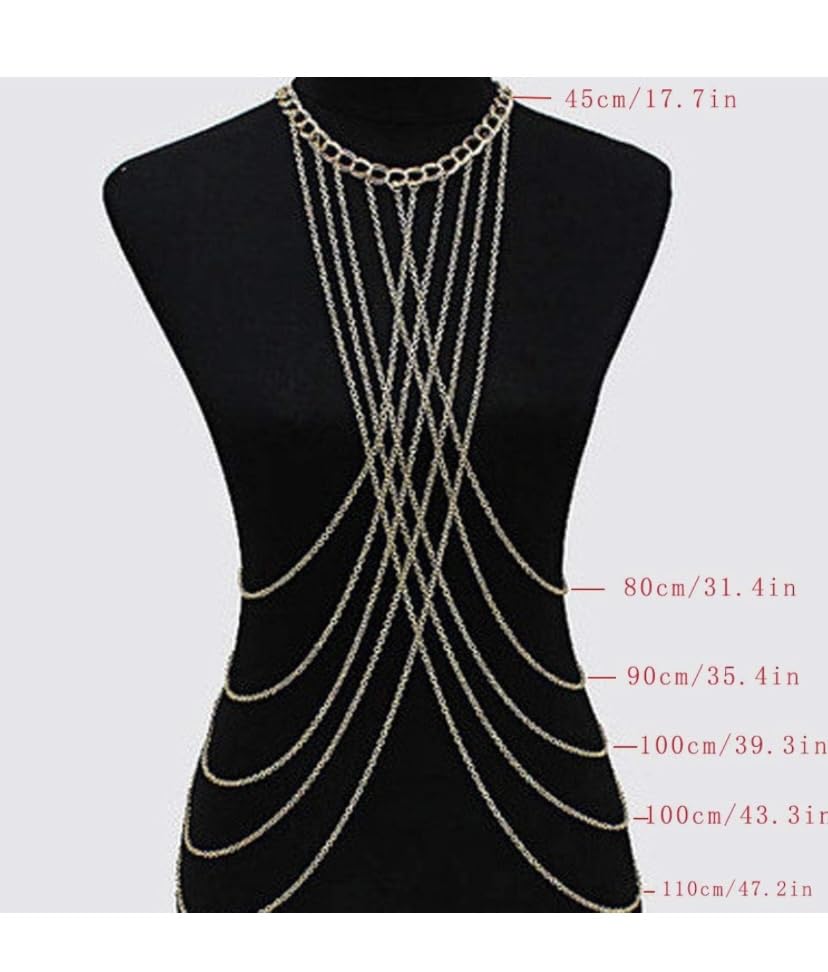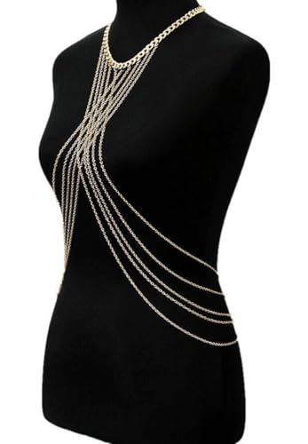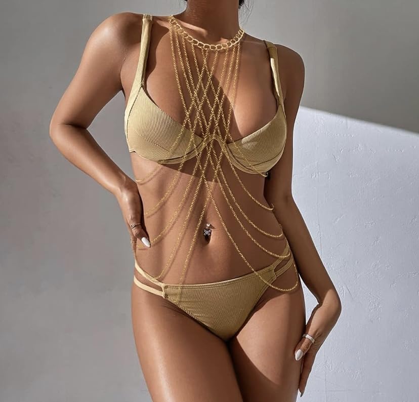 Generic - جيني سلسلة ذهبية للجسم حمالة صدر كروس اوفر، سلسلة بيكيني سلسلة مجوهرات للجسم للنساء والفتيات