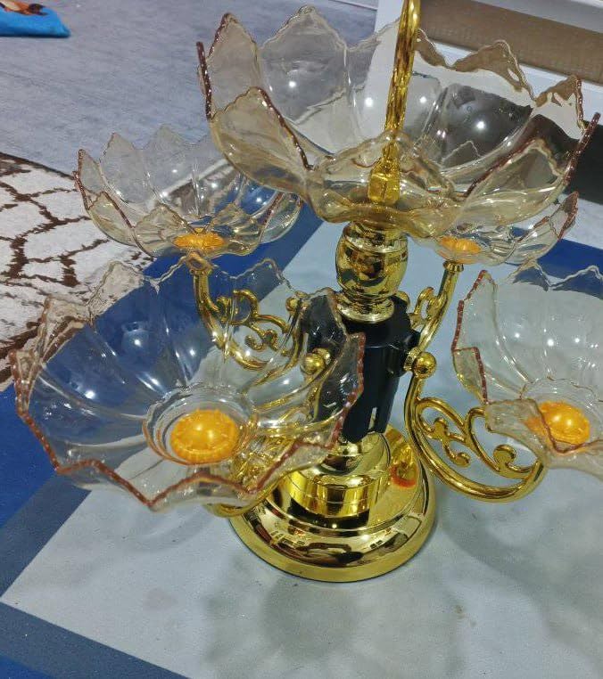 - يأتي الشمعدان بخمس بولات متعددة تتيح لك تقديم مجموعة متنوعة من الفواكه والحلويات.
