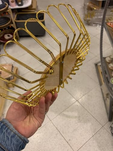 - تصميم أنيق: تتميز سلة الفاكهة المعدنية الذهبية الأنيقة هذه بنمط منسوج معقد، مما يضيف لمسة من الرقي إلى ديكور منزلك.