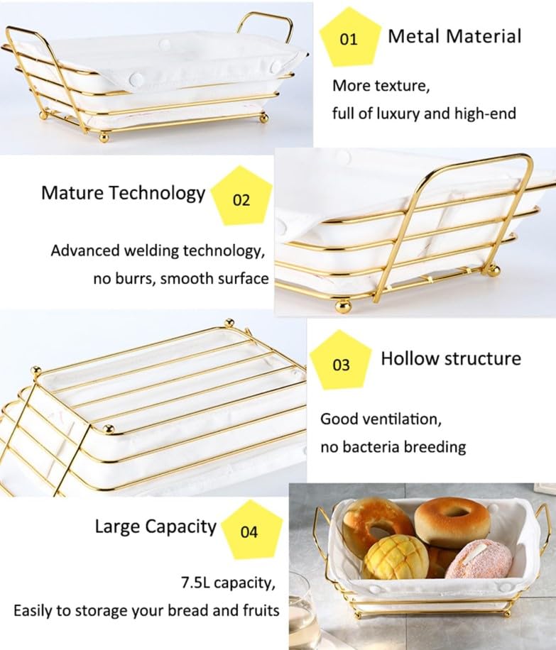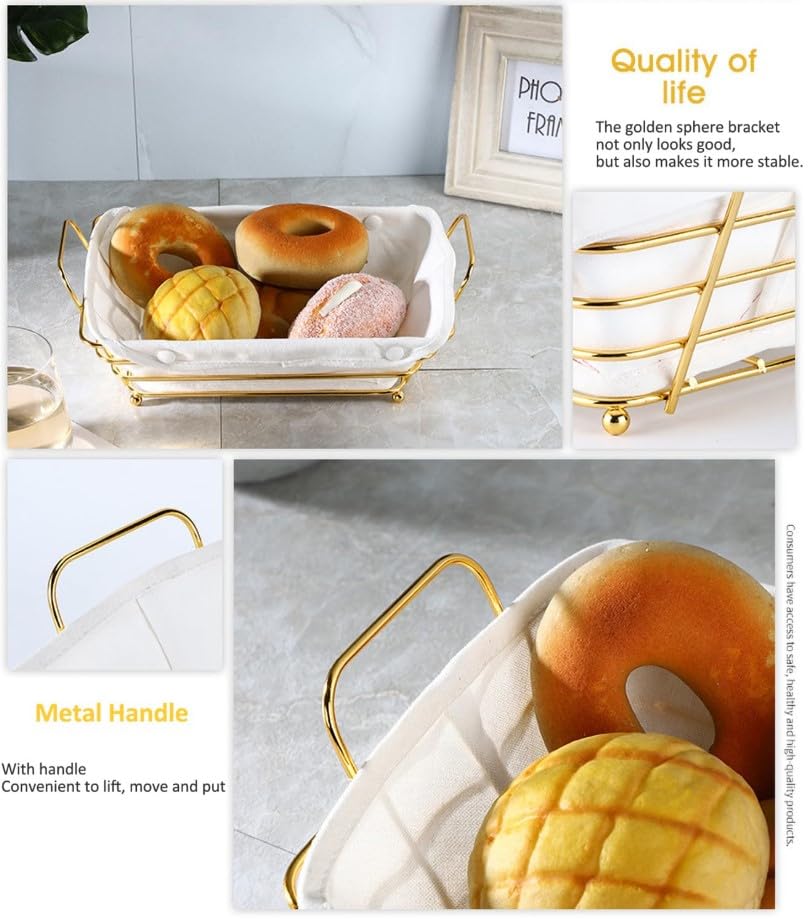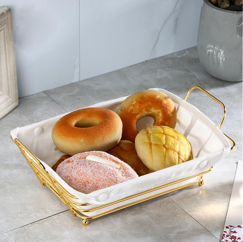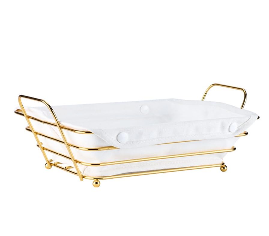 Generic - عياشة لتقديم الخبز من السلك بتصميم مستطيل مع بطانة من القماش مناسبة للحفلات للفواكه والخضروات والخبز، ذهبي وأبيض