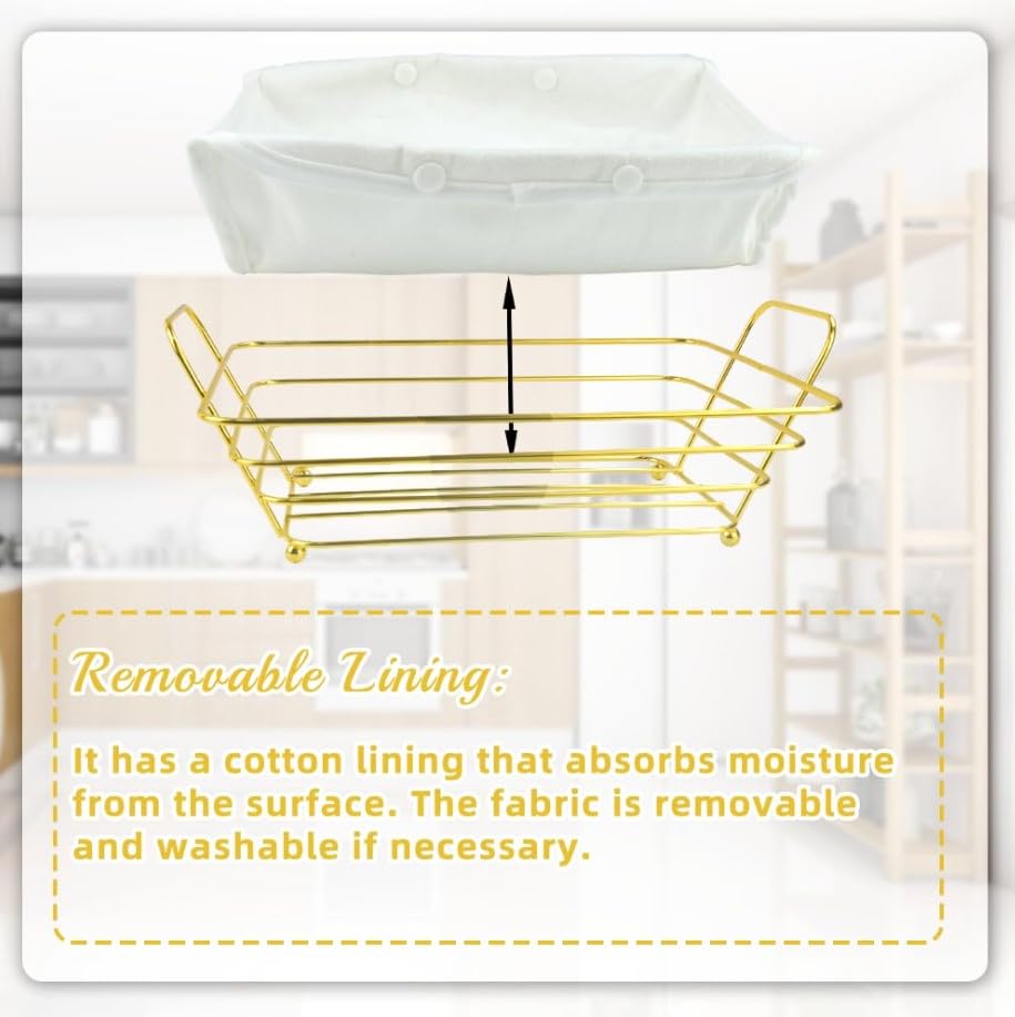 • تصميم ذهبي أنيق: ضيفي لمسة من الرقي إلى طاولتك مع سلة الخبز السلكية الذهبية العصرية هذه، المصممة لتكمل أي نمط ديكور.
