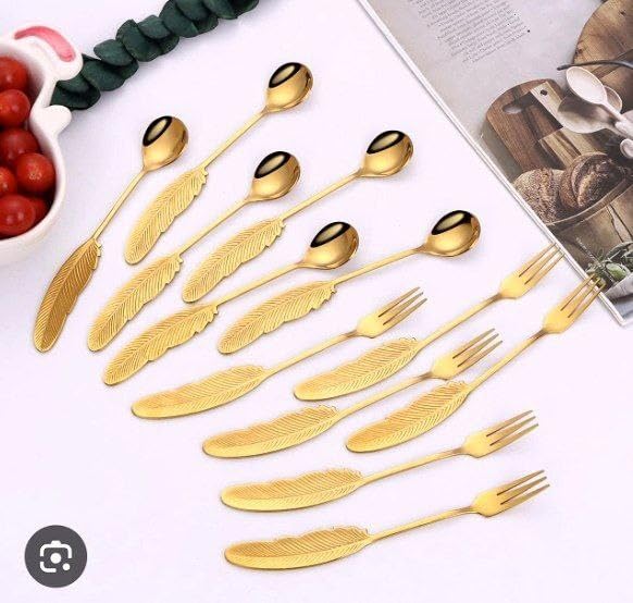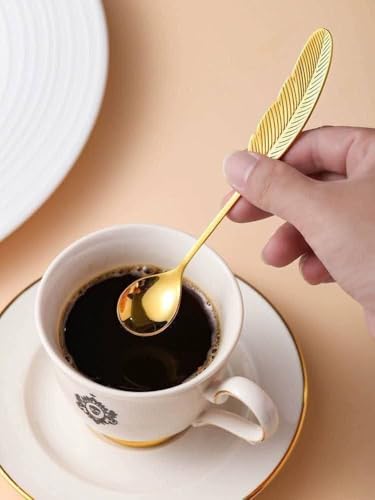 Generic - جيني ملاعق شاي وحلويات مطلية بالذهب بتصميم ريش، مجموعة من 6 قطع .ايه 2
