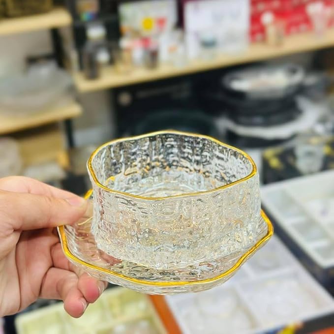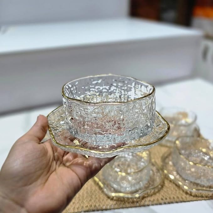 - جودة فاخرة: مصنوعة من زجاج شفاف متين مع حواف ذهبية مقاومة للبهتان، مما يضمن جمالًا وعمليًا يدوم طويلاً