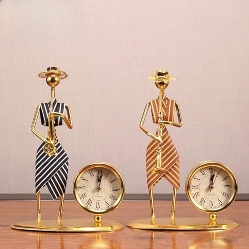 Generic - ديكور ساعة ذهبية وآلة موسيقية مصنوعة بحرفية عصرية ومبتكرة من المعدن لتزيين المكتب والمنزل
