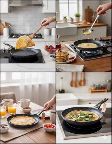 - أدوات طبخ متعددة الاستخدامات: مصممة خصيصًا للكريب والبان كيك، ولكنها ممتازة أيضًا للتورتيلا والخبز المسطح والبيض وغيرها من الأطعمة الرقيقة التي تتطلب تحكمًا دقيقًا في درجة الحرارة.