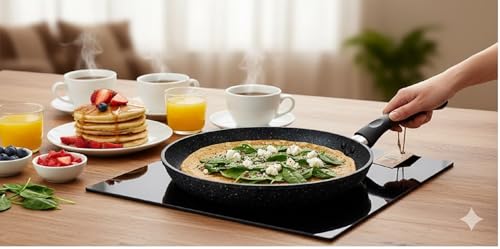 - طلاء فاخر مانع للالتصاق: تتميز بسطح متين غير لاصق ذو مظهر جرانيتي، يتطلب كمية قليلة من الزيت لطهي صحي، ويضمن سهولة إخراج الطعام وتنظيفه.
