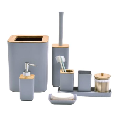 Generic - طقم اكسسوارات حمام لون الخشب والرمادي، 6 قطع