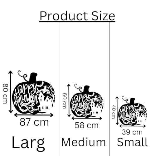 - مقاسات التصميم: متوفر بثلاثة مقاسات - كبير (87 سم)، متوسط (58 سم)، صغير (39 سم) - مثالي لخلق جو هالوين مخيف في أي مساحة