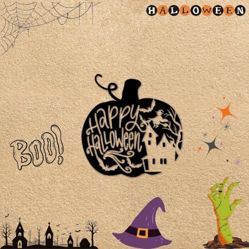 Generic - جيني ديكور حائط للهالوين، صورة ظلية اليقطين السوداء مع تصميم خفافيش، كبير 87 × 87 سم، فن معدني مزخرف مع ادوات تركيب، عرض داخلي للعطلات (مقاس L)