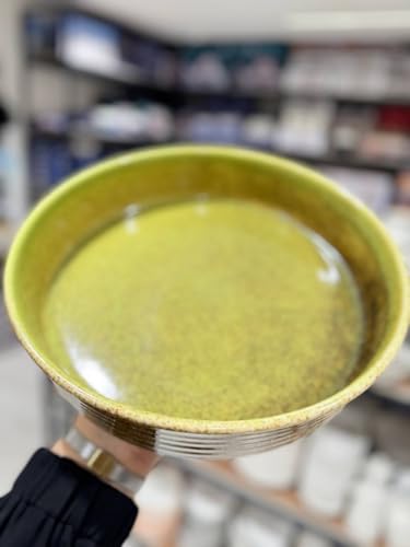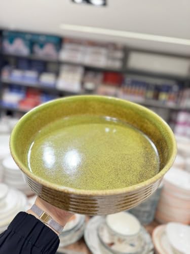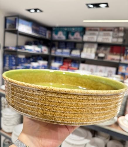 Generic - طبق خزفي دائري مصنوع يدويًا من السيراميك، بورسلين بملمس مضلع، آمن للاستخدام في الفرن والميكروويف، وفي غسالة الصحون من جينيريك، بني وأخضر