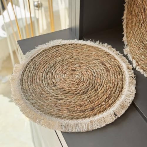 - تصميم مصنوع يدويًا: قاعدة أكواب منسوجة يدويًا بشكل جميل مع لمسة نهائية طبيعية وحواف مهدبة مزخرفة، مما يضيف سحرًا ريفيًا إلى إعداد طاولتك