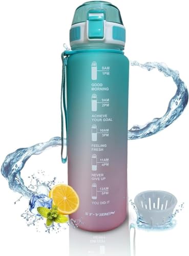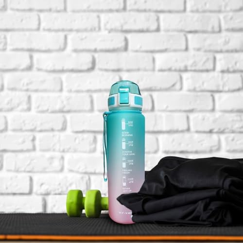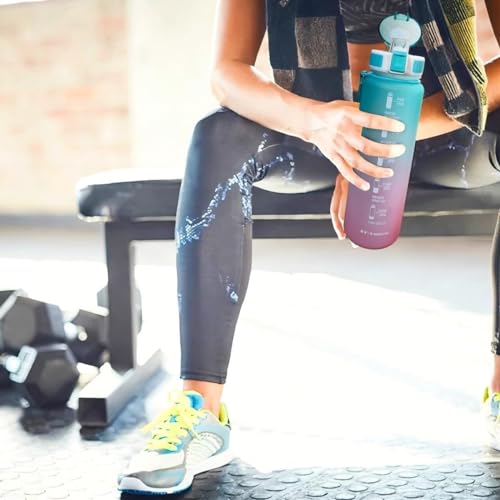 Generic - زجاجة مياه رياضية بلاستيكية تريتان للشرب بعلامات تحديد للوقت وصفاية وشفاطة مزينة باقتباسات تحفيزية خالية من البيسفينول ايه للمدرسة ومكتب وصالة ألعاب ورياضة الخارجية هانسو 1 لتر رمادي
