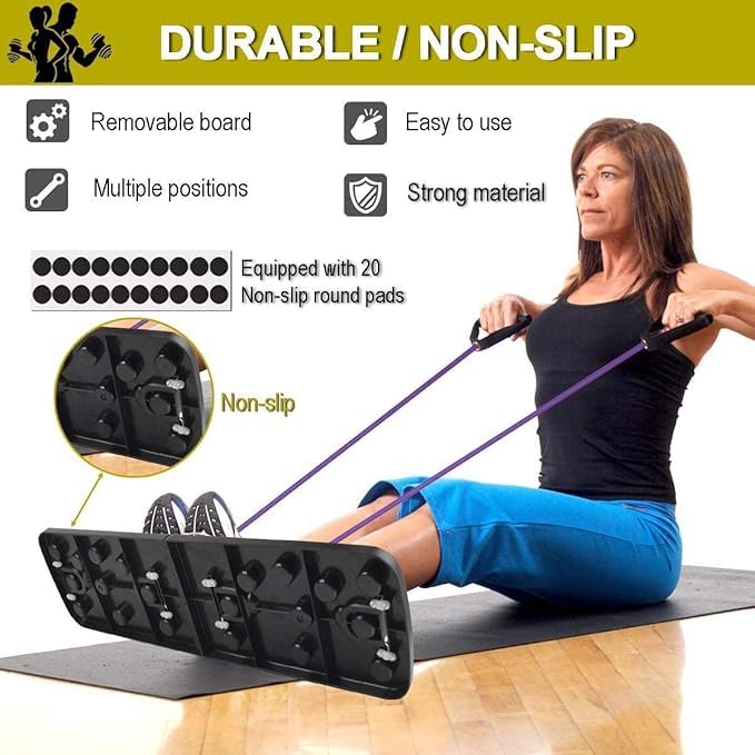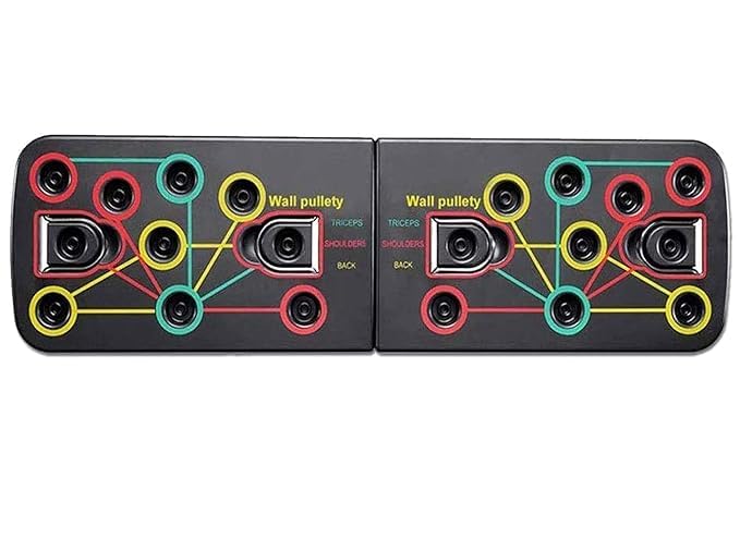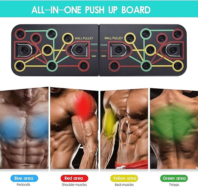 - 🎯 نظام الضغط الرباعي: لوح ضغط رباعي متعدد الاستخدامات بألوان مميزة، حيث تشير كل منطقة ملونة إلى مجموعة عضلية مختلفة: الصدر، الكتفين، الظهر، والعضلة ثلاثية الرؤوس، لتمنحك تمرينًا متكاملًا وفعالًا. ببساطة قم بتوصيل المقابض بالمنطقة المرغوبة وابدأ التمرين.