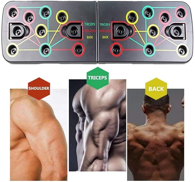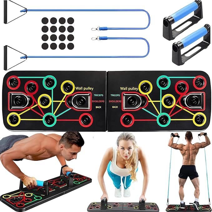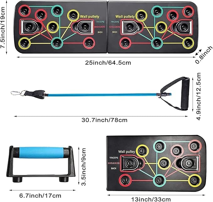 - 🏋️♂️🔥 لوح تمارين الضغط: يتيح لك اللوح المبتكر أداء أنواع مختلفة من تمارين الضغط بسهولة وكفاءة. استهدف مجموعات عضلية مختلفة وحسن لياقتك البدنية وقدرتك على التحمل ووضعية جسدك.