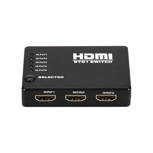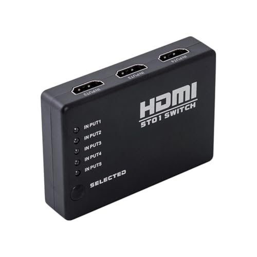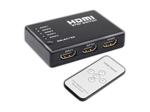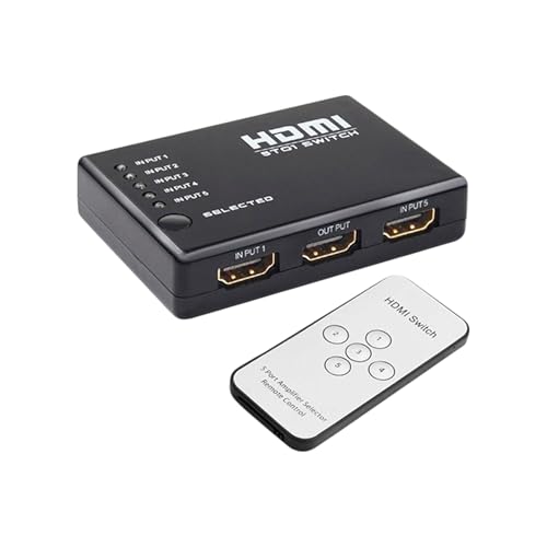 Generic - جيني محول اتش دي ام اي متعدد المنافذ 1080P الترا اتش دي لاجهزة دي في دي وتلفزيون اتش دي تي في واكس بوكس مع جهاز تحكم عن بعد (اسود، 5 منافذ)