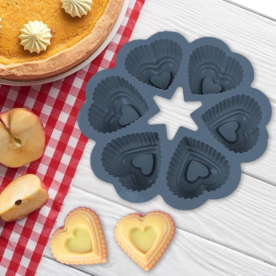 Generic - جيني قالب خبز سيليكون على شكل قلب، تصميم نجوم، 6 تجاويف، مقاوم للحرارة للكب كيك والحلويات. دي بي
