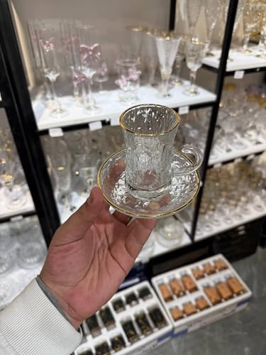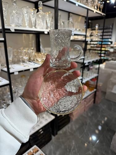 Generic - جيني طقم شاي زجاجي مقاوم للحرارة مع مقابض، حواف ذهبية، سعة 250 مل، 6 قطع