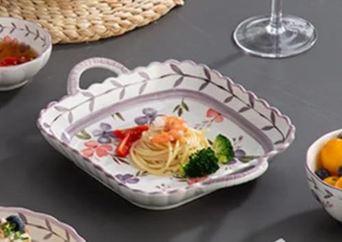 Generic - جيني طبق كسرولة بورسلين مقاوم للحرارة بتصميم زهور، مربع 20 سم، .اس ام كيه