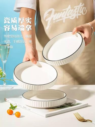 Generic - جيني طبق بورسلين مقاوم للحرارة بحافة سوداء، ابيض، 20 سم، امن للاستخدام في الميكروويف واللهب المباشر، تصميم مدبب