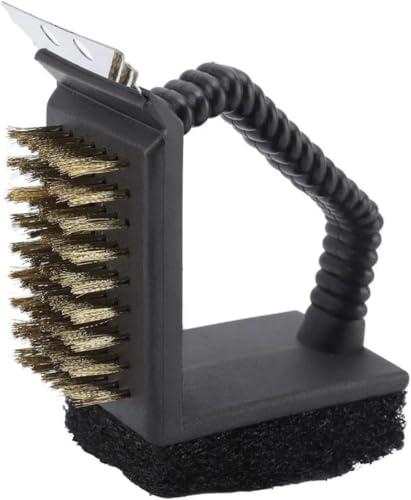 Generic - جيني فرشاة شواء شديدة التحمل مع مكشطة ووسادة تنظيف، اسود، اداة تنظيف 3 في 1، شعيرات معدنية، مقبض مرن