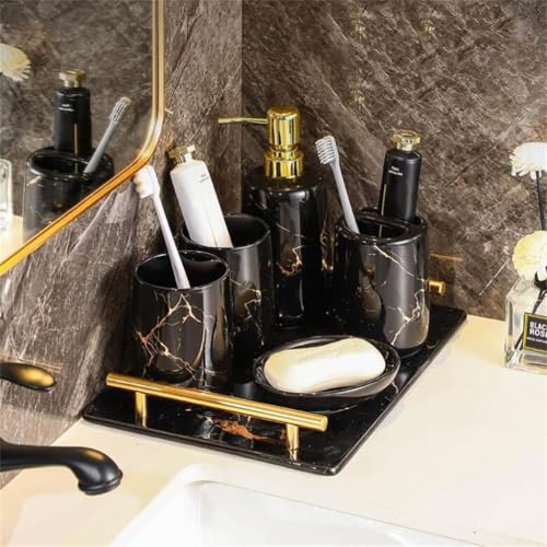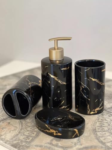 - **مكون من 4 قطع:** يضم الطقم 4 قطع مختلفة تشمل ديسبنسر، صابونة، حامل معجون الأسنان، وحامل الفرشاة.