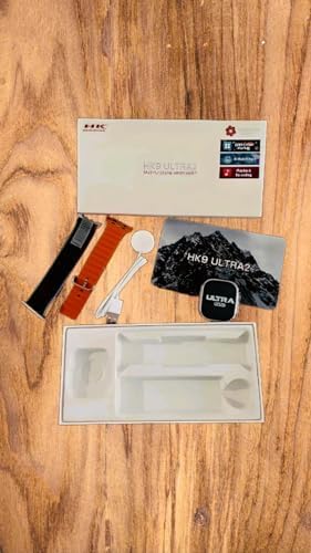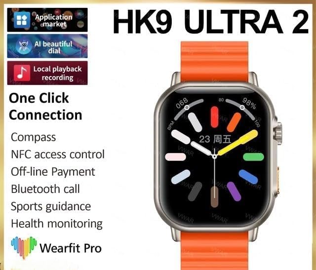 Generic - ساعة ذكية HK9 الترا 2 شاشة اموليد 2.02 بوصة بلوتوث 5.1 تعمل باللمس الكامل سوار مبارز مكالمات (برتقالي)
