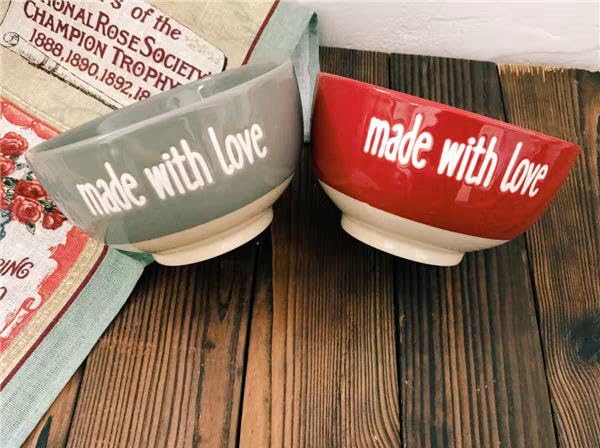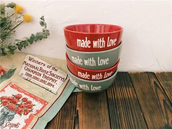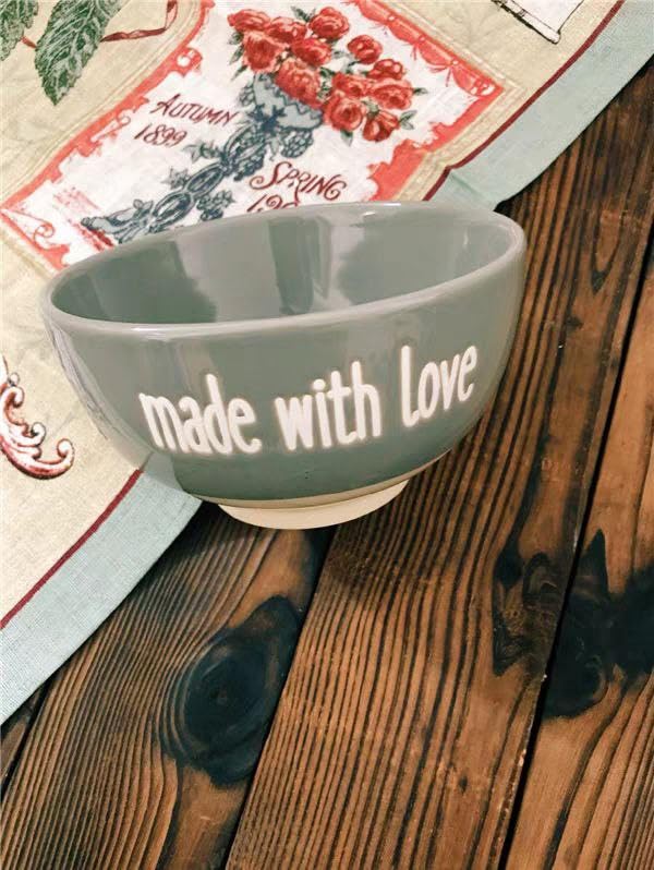 • التصميم: بولة تقديم أنيقة من السيراميك باللون الرمادي تتميز بنص "Made with Love" باللون الأبيض، مثالية لإضافة لمسة شخصية إلى تجربة تناول الطعام الخاصة بك.