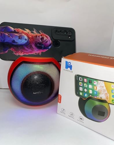 Generic - مكبر صوت بلوتوث ستيريو محمول لاسلكي HR-P70، يدعم منفذ USB وإضاءة بألوان ار جي بي وشريحة Micro SD وراديو اف ام وايه يو اكس وحامل موبايل، لون أحمر