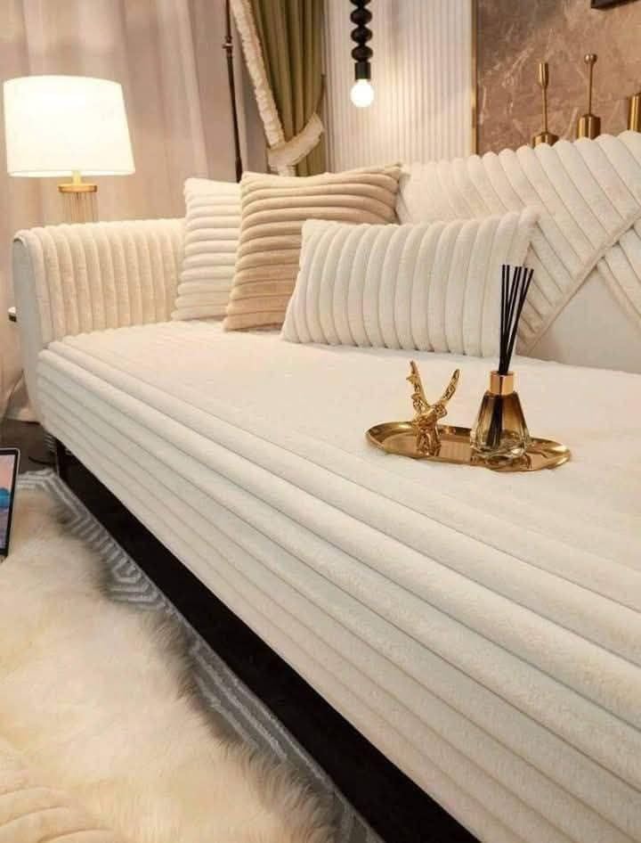 - خامة فائقة النعومة: طقم أريكة من الفرو المستورد مصنوع من مواد ناعمة بشكل استثنائي بلون أبيض كريمي أنيق، مما يوفر راحة فاخرة ومظهر راقي لمساحة معيشتك