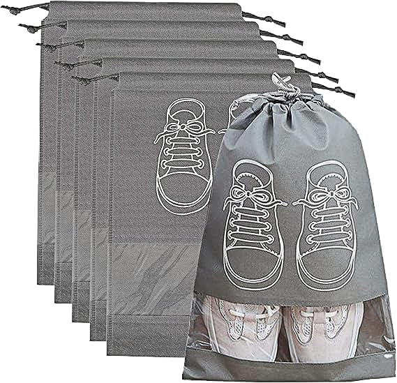 Generic - اكياس تخزين احذية كبيرة من انك، شنط احذية برباط مقاومة للغبار مع فتحة شفافة، منظمات تعبئة محمولة مقاومة للماء للاستخدام اليومي والسفر، متعددة الالوان، 5 قطع، رمادي، كلاسيك