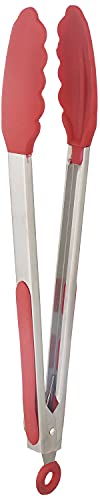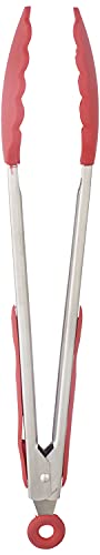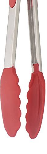 MT - مساكة طعام سيليكون بمقبض ستانلس ستيل - فضي واحمر