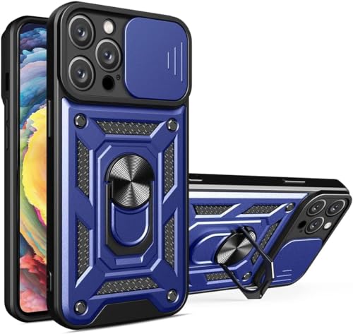 Generic - جراب خلفي حماية ممتازة متوافق موبايل Iphone 15 pro مع غطاء منزلق للكاميرا وحامل حلقي مدمج حافظة مضاد للصدمات لموبايل ايفون 15 برو (Iphone 15 pro, ازرق)، البولي يوريثين الحراري