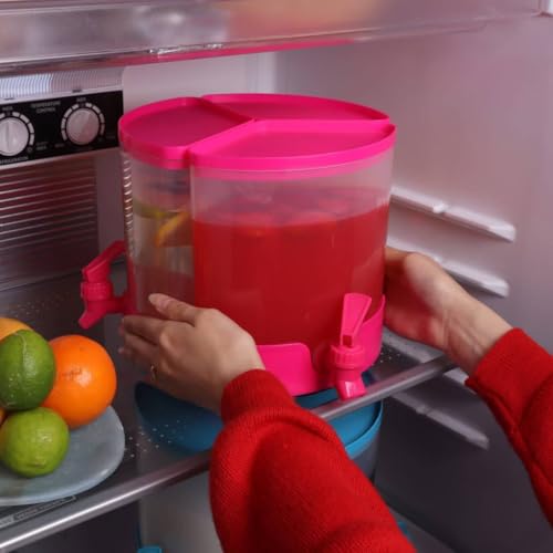 Generic - جيني موزع عصير مع حنفية، 3 اقسام، موزع مشروبات بلاستيكي مع قاعدة دوارة