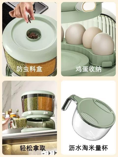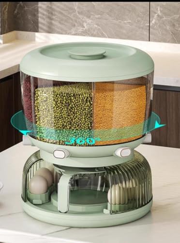 Generic - موزع حبوب جافة عملاق بدوران 360° مع 6 أقسام تخزين وحامل بيض مدمج وإبريق للتصفية (هجاز)
