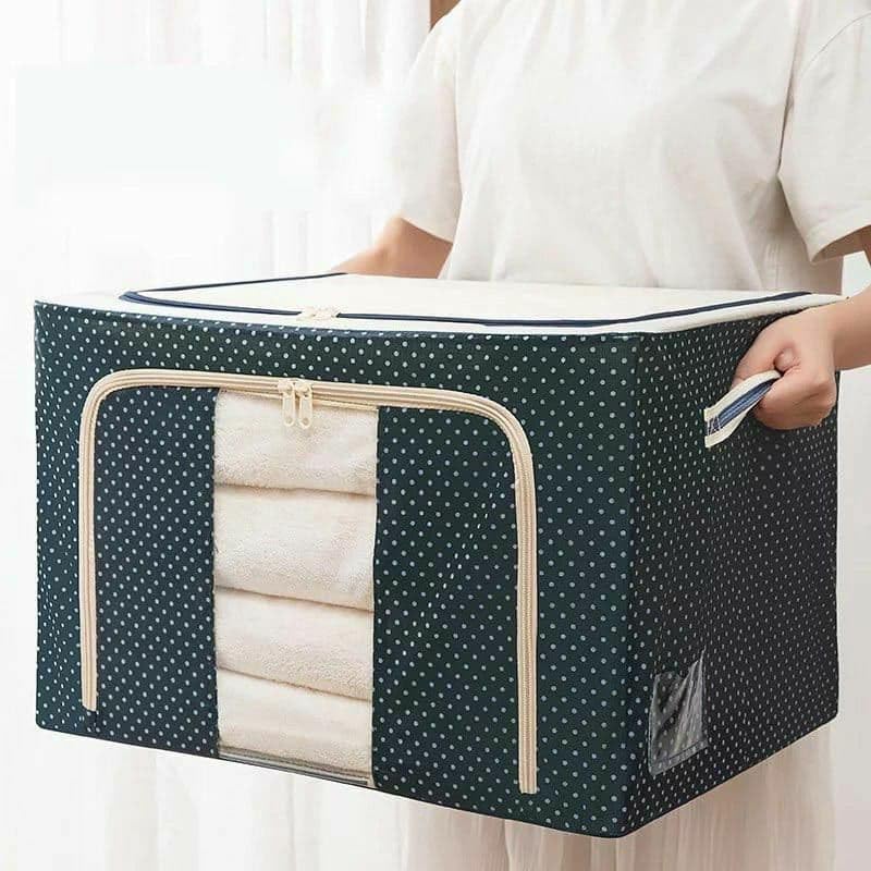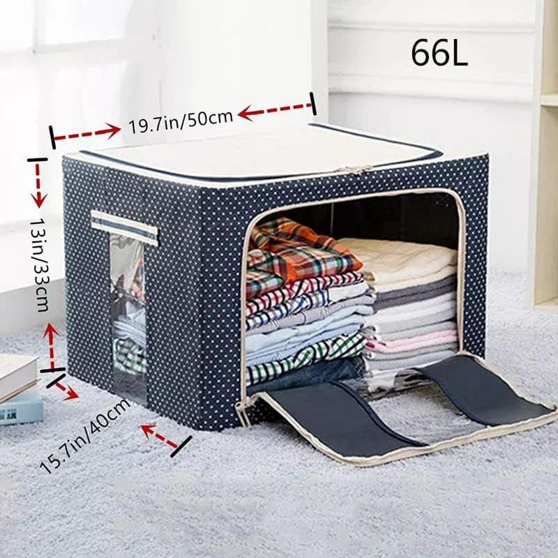 Generic - صندوق تخزين جامبو بإطار معدني، سعة 66 لتر، نقشة منقطة بولكا، 50×40×35 سم، أزرق كحلي