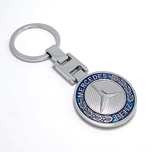 - سلسلة مفاتيح من المعدن بنقشة شعار مرسيدس بنز المزدوج، مطلية بالنيكل