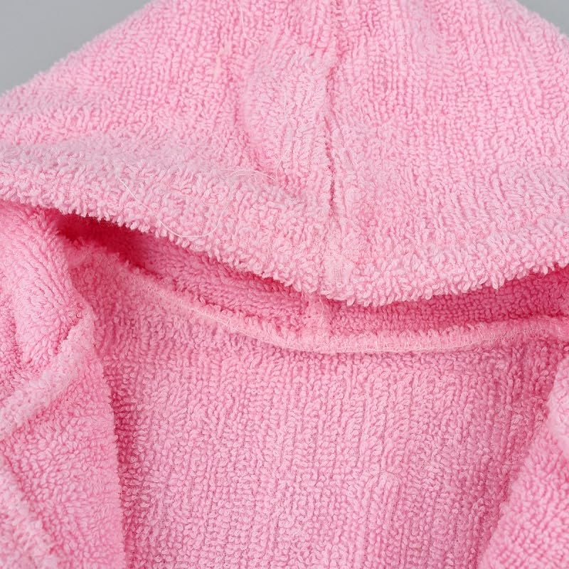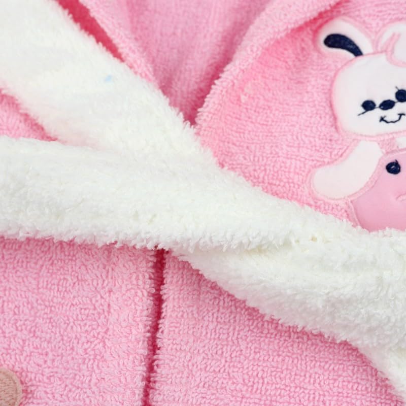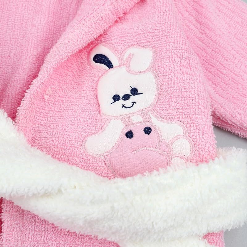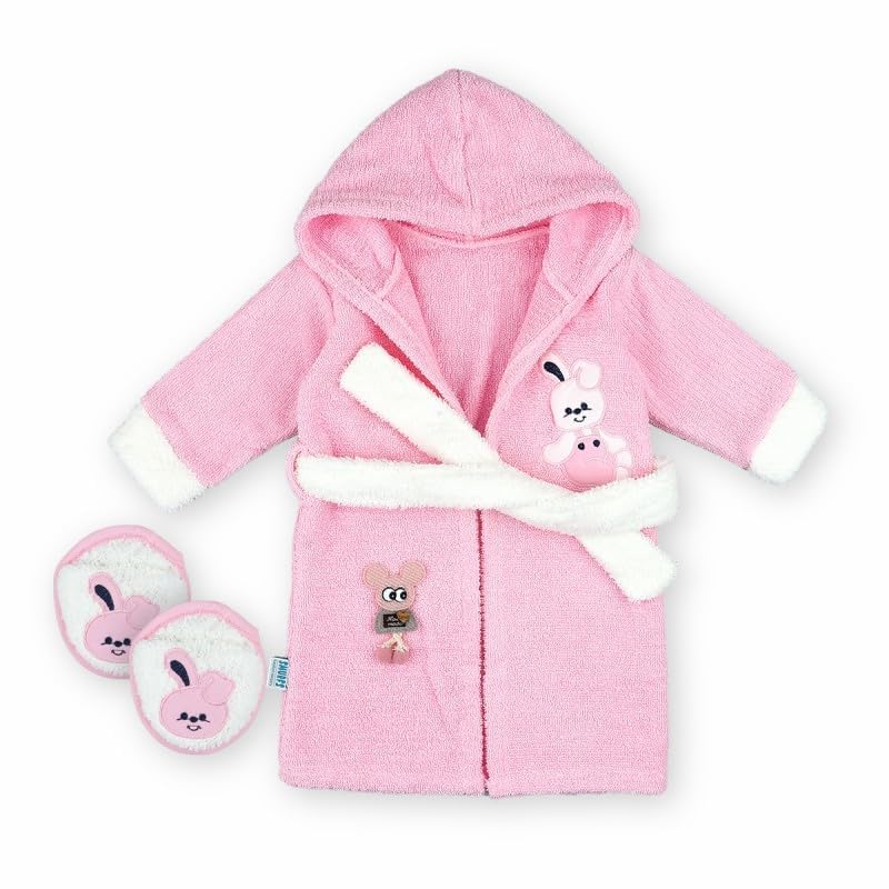 Generic - جيني روب حمام بغطاء للرأس للاطفال بتصميم ارنب بلون بينك وابيض مع شبشب متطابق