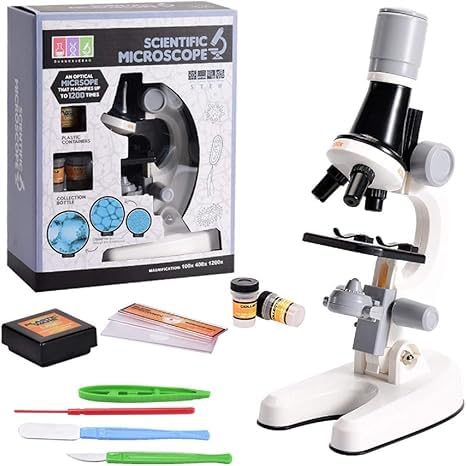 Generic - مجموعة مجهر للأطفال للطلاب المبتدئين بتكبير 100X-1200X مصنوعة من مواد بلاستيكية صديقة للبيئة تشمل مجهر وشرائح بلاستيك وضوء ليد (لون أبيض)