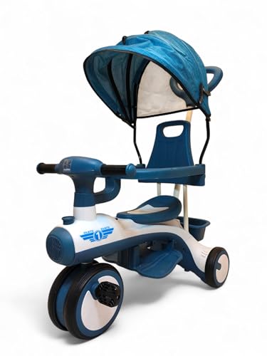 Generic - عجلة موجهة للأطفال مع أصوات وإضاءة ومظلة، مناسبة من سن سنة ونصف، لعبة ركوب للأطفال (BIUE)