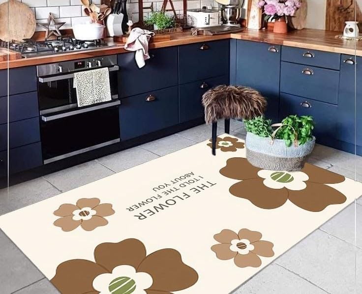 Generic - جيني سجادة ارضية للمطبخ بنمط زهور بنية مع ظهر مانع للانزلاق، 120 × 160 سم، متوافقة مع بلاط السيراميك، (كريمي وبني)