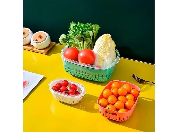 Generic - طقم ثلاجة للمطبخ مكون من 3 قطع مع صفاية، علب متعددة الوظائف للفواكه والخضروات، متينة ومقاومة للبقع