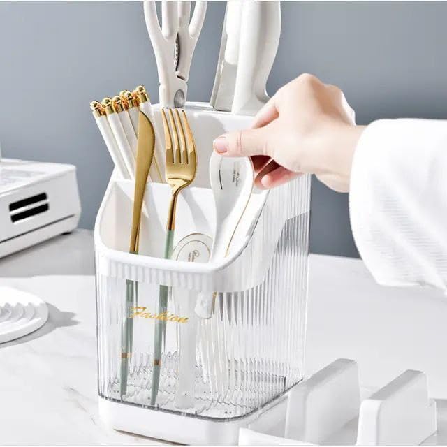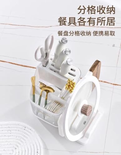 Generic - منظم أدوات المطبخ مع حامل غطاء حلة، علبة تخزين أدوات المائدة مصنوعة من الأكريليك، لون أبيض