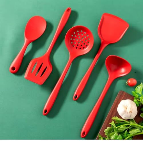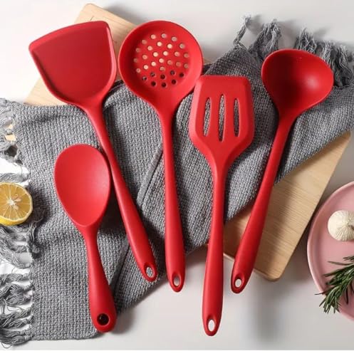 Generic - طقم أدوات مطبخ سيليكون مقاوم للحرارة، 5 قطع، أحمر