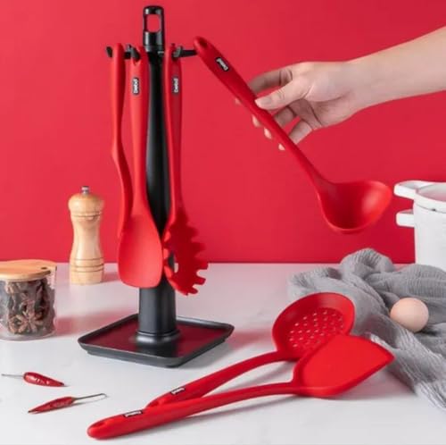 - مجموعة كاملة: يتضمن طقم أدوات المطبخ المكونة من 5 قطع ملعقة تقديم ومعلقة مخرمة لتقليب الطعام وملعقة مفصوصة ومغرفة شوربة وملعقة سباتولا- بلون أحمر رائع